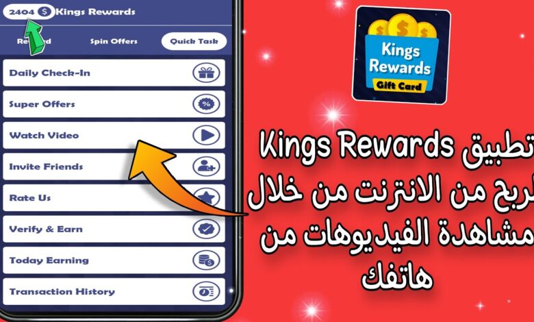 ماهو تطبيق ربج المال مقابل مشاهدة الاعلانات kings rewards